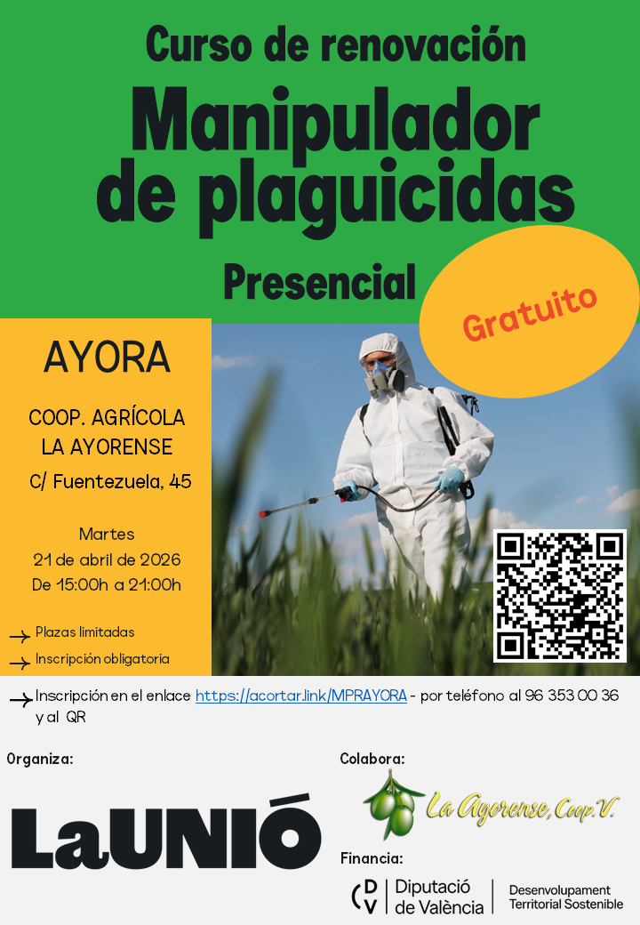 AYORA.- Curso presencial de Renovación de Manipulador de plaguicidas (Ed. 2)
