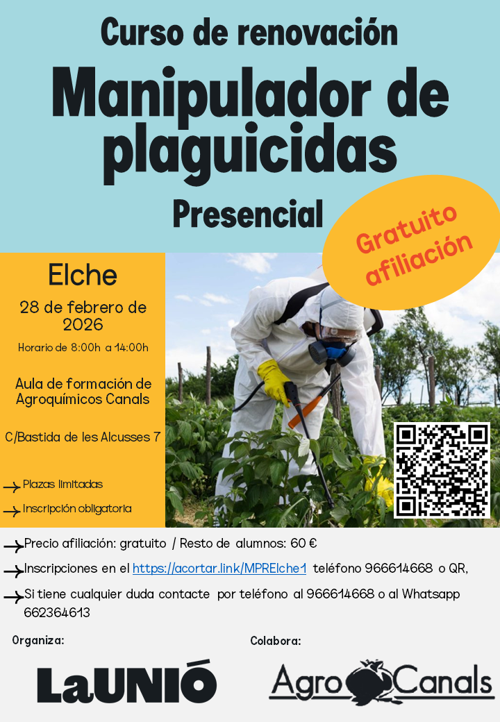El curso es gratuït per als afiliats a LA UNIÓ i té una tarifa de 60 € per a la resta de llauradors i ramaders.