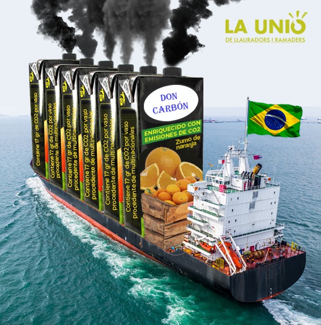 La iniciativa de LA UNIÓ -para ello ha diseñado unos carteles- incide en la necesidad de apostar por los zumos con fruta local en lugar de los importados, no ya solo por la parte económica que es importante, sino también por la medioambiental. Un estudio realizado por los servicios técnicos de la organización revela que un vaso de zumo con cítricos importados por mar emite 17 gramos de CO2. En este sentido, insta a los consumidores a leer bien las etiquetas de los zumos porque muchas veces la frase “envasado aquí” no quiere decir que sea “de aquí”.