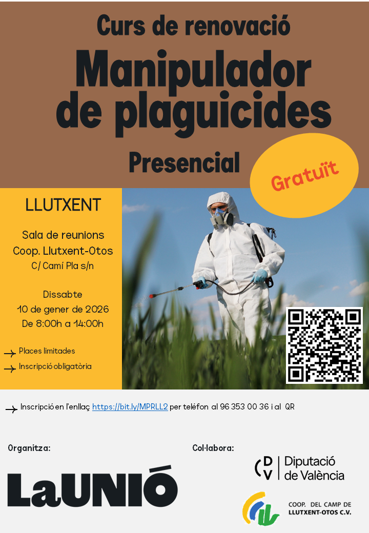 LLUTXENT.- Curs gratuït de renovació de manipulador de plaguicides.