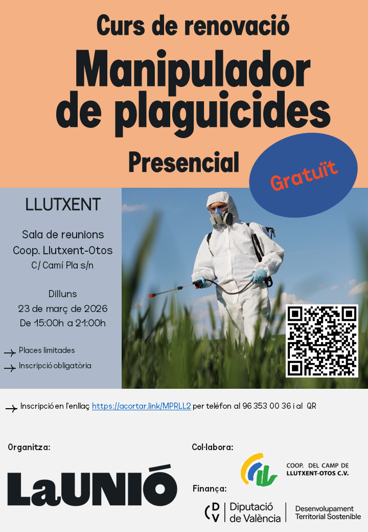 Llutxent.- Curs gratuït de renovació de manipulador de plaguicides.