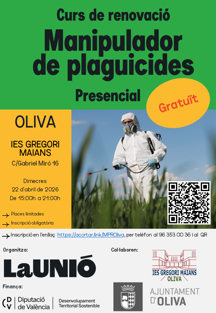 OLIVA.- Curs gratuït de renovació de manipulador de plaguicides.